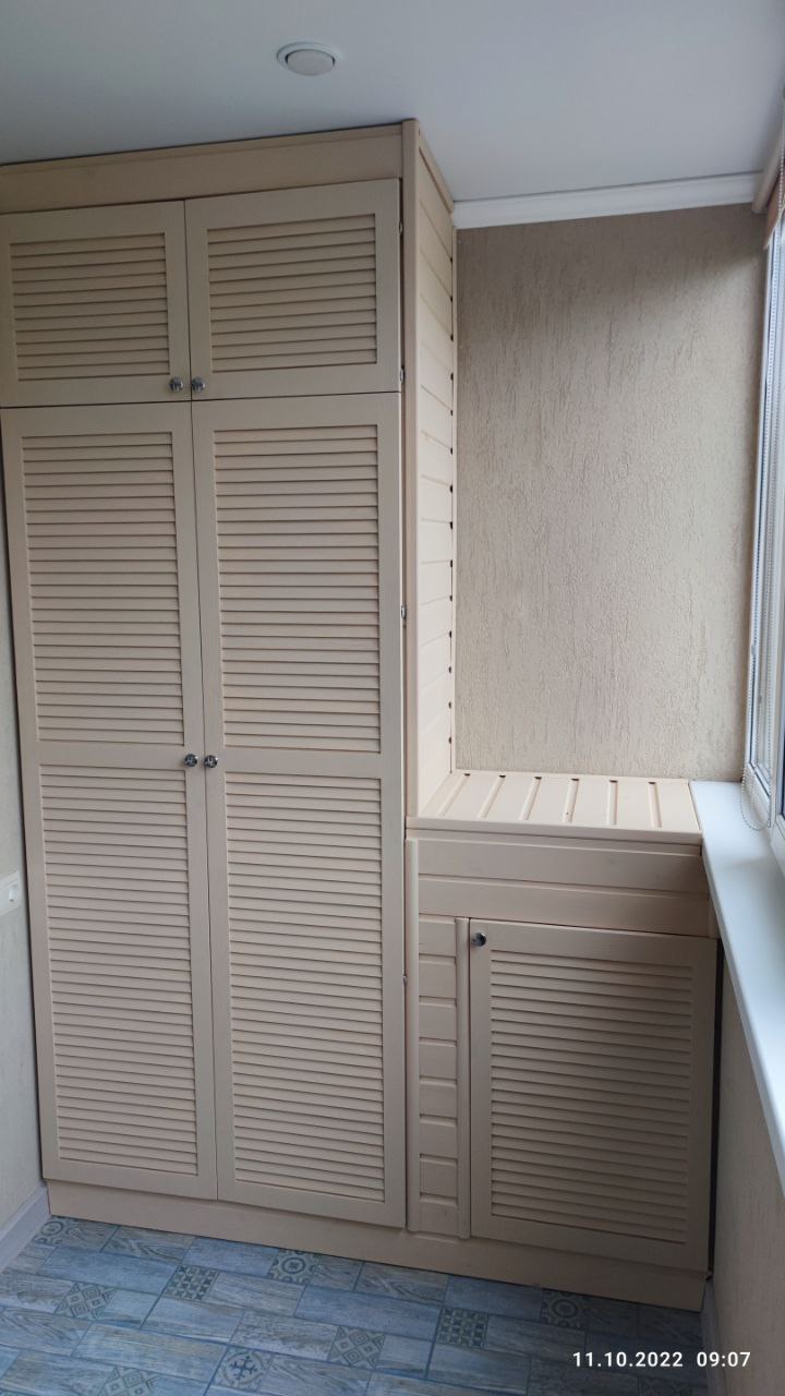 Жалюзийные шкафы от компании балкон Сервис- это шлифованные сосновые или липовые ламели. Собранные на производстве под ваши размеры